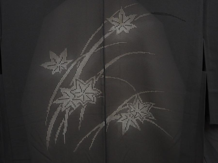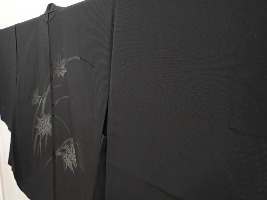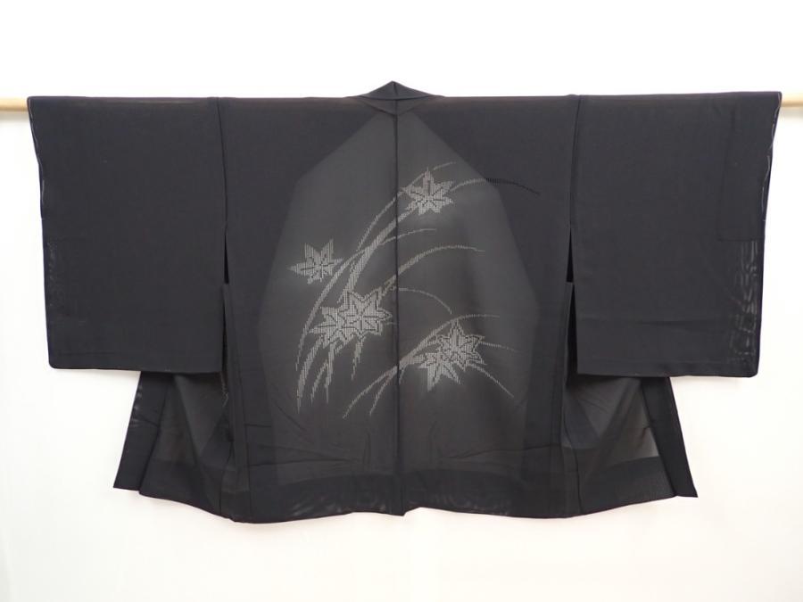 5907T02z260 Vintage Japanese Kimono Silk See through HAORI Maple Black