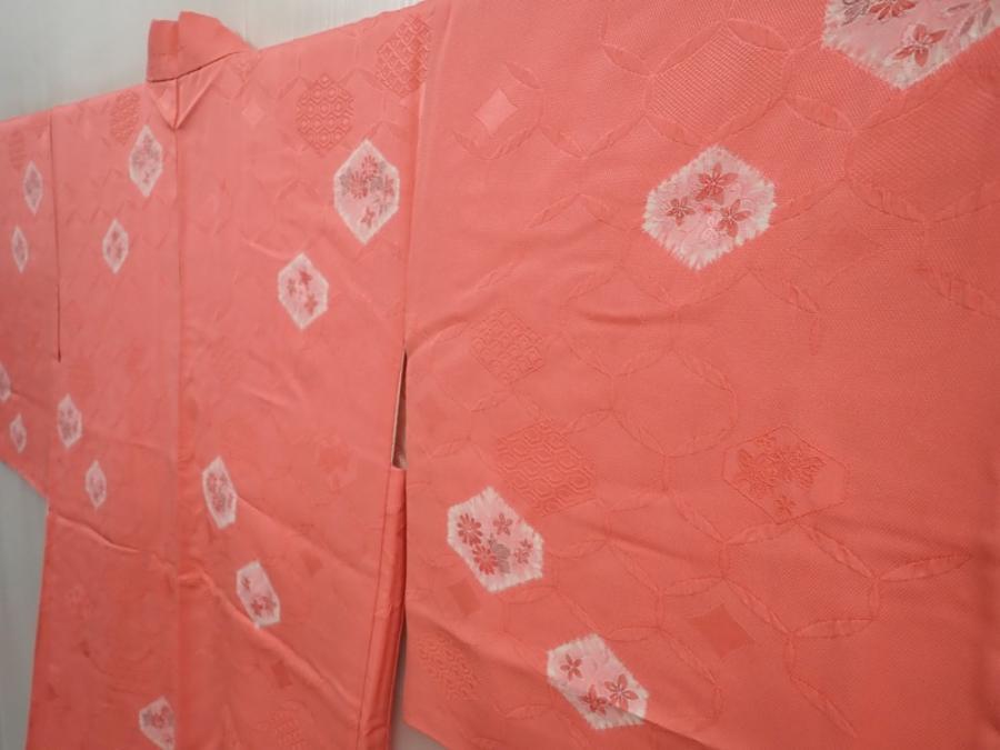 5907T03z580 Vintage Japanese Kimono Silk HAORI Flowers Coral pink