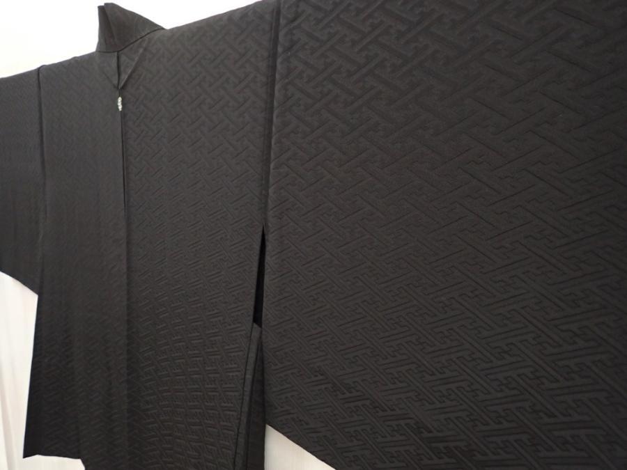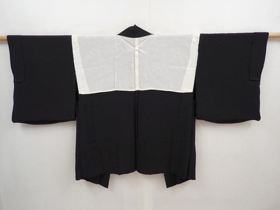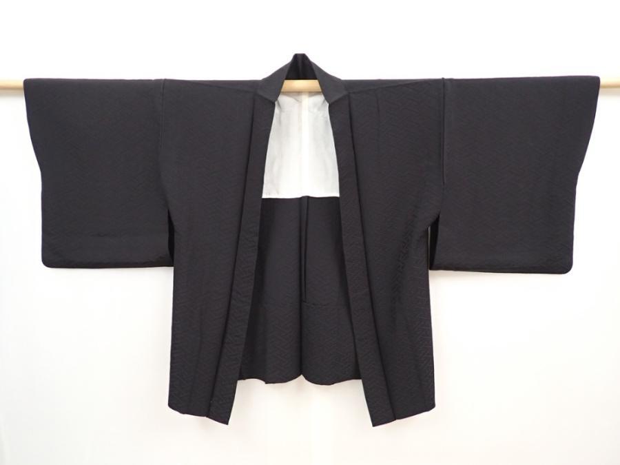 5907T04z430 Vintage Japanese Kimono Silk HAORI Sayagata Black