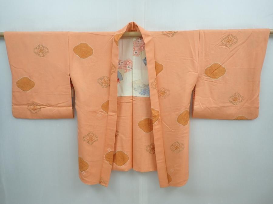 5907T05z600 Vintage Japanese Kimono Silk HAORI Flower Dark coral