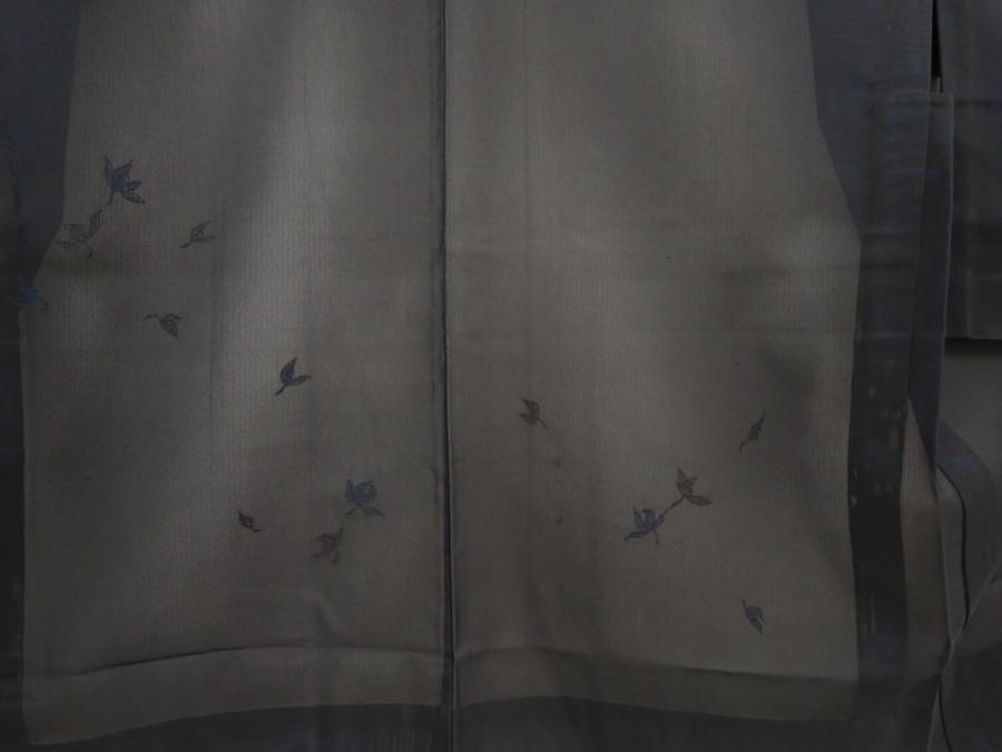 5907T06z290 Vintage Japanese Kimono Silk See through HAORI Flower Black