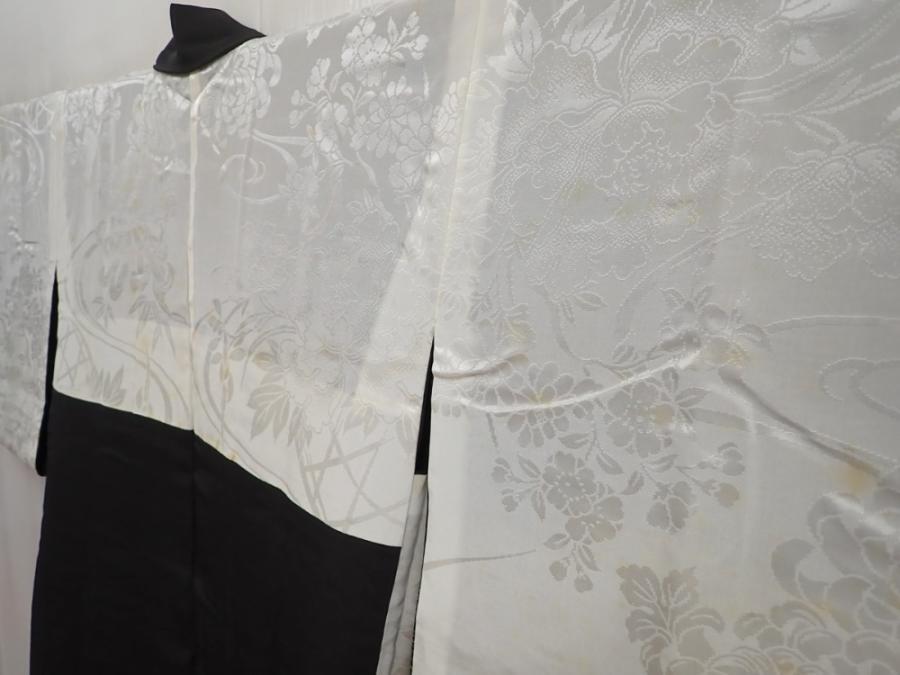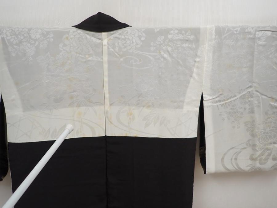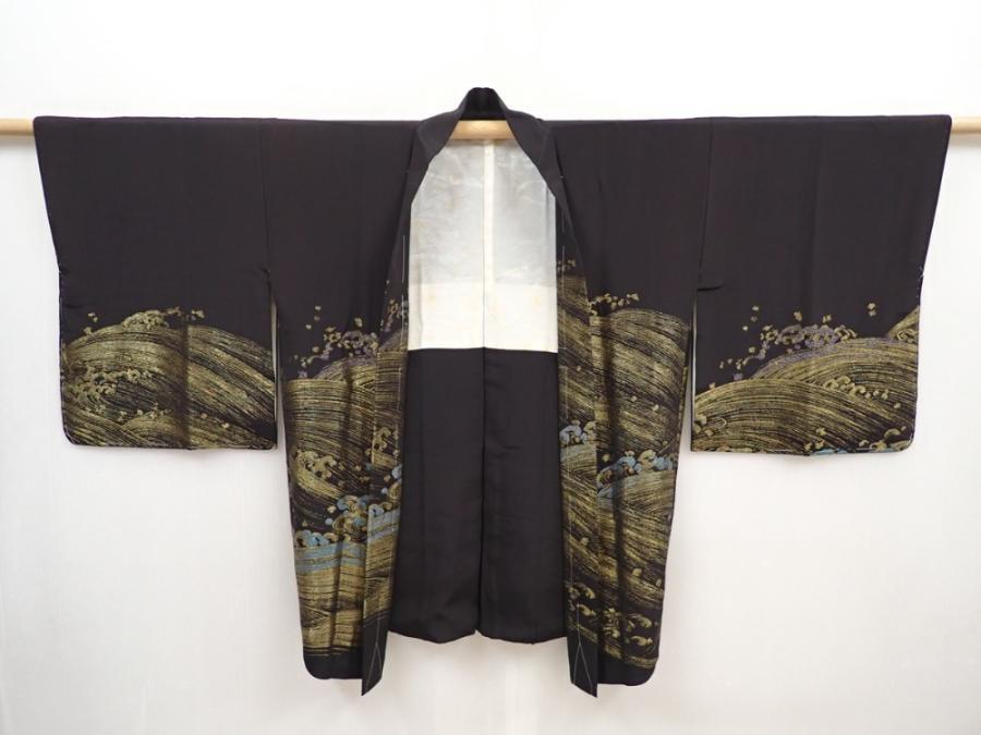 5907T08z620 Vintage Japanese Kimono Silk HAORI Wave Black