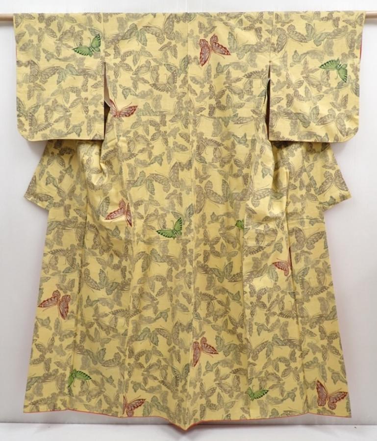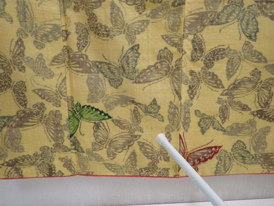 5907T09z790 Vintage Japanese Kimono Silk TSUMUGI Butterfly Straw yellow