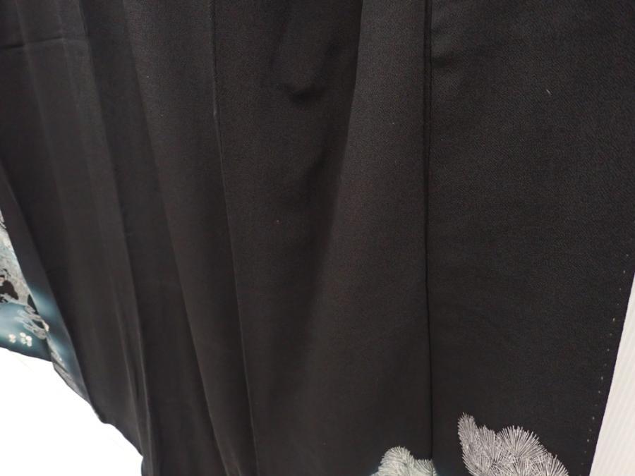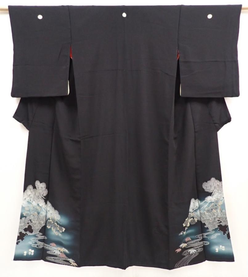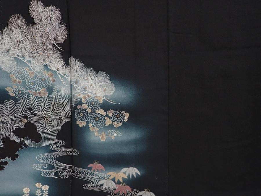 5907T10z830 Antique Japanese Kimono Silk TOMESODE Pine Black