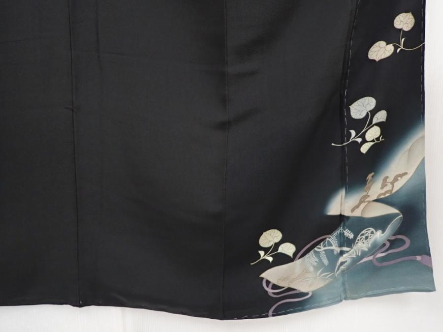 5907T11z850 Antique Japanese Kimono Silk TOMESODE Aoi Black