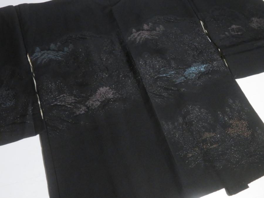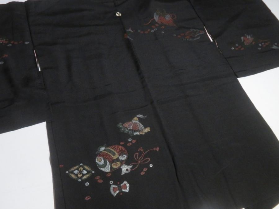 NHGB01z14 Japanese Kimono Silk BLACK HAORI 25pcs FREE SHIPPING