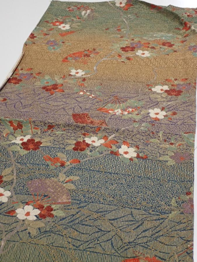 2C01z60 Japanese Kimono Silk FABRIC Branch Dark green 40.9x14.8
