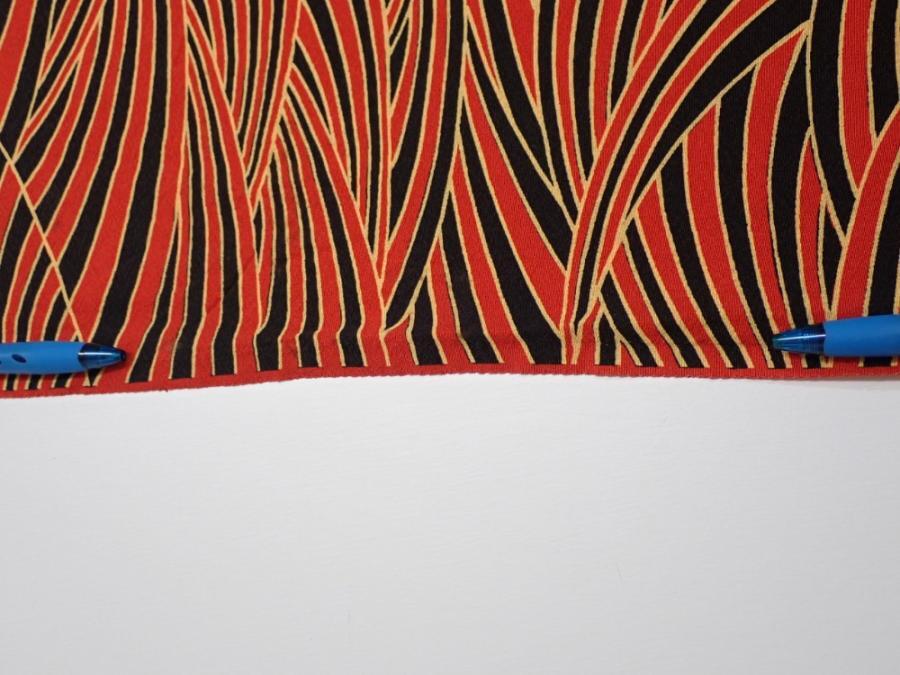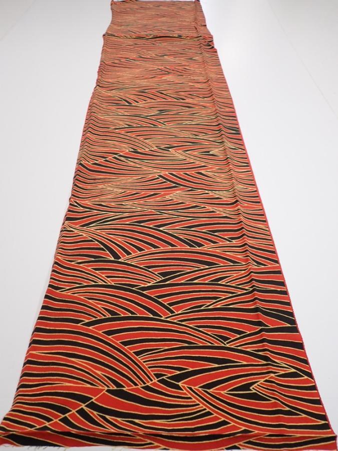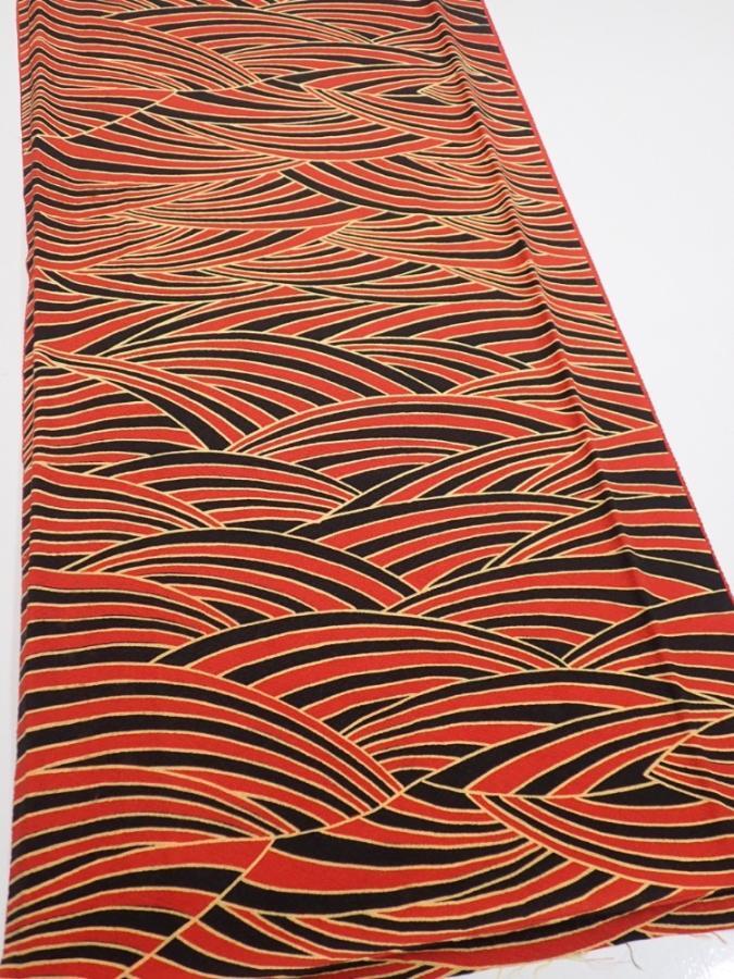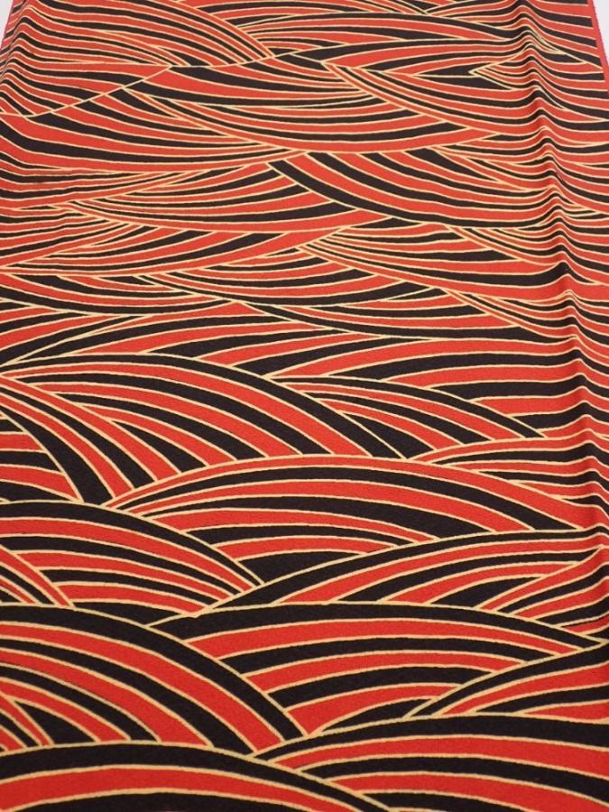 2C01z90 Japanese Kimono Silk FABRIC Wave Orange-Red 62.6x14.6