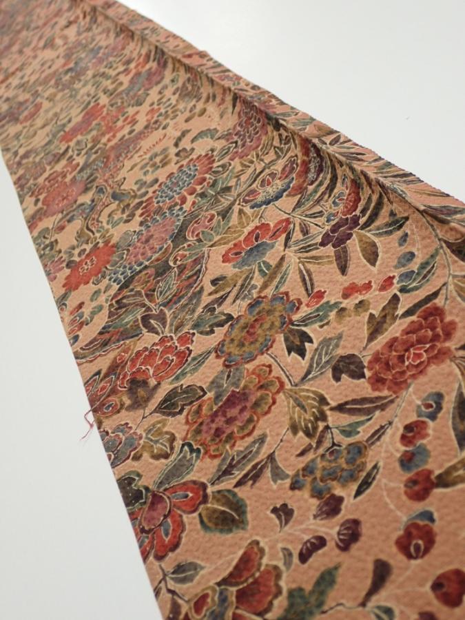 2C08z40 Japanese Kimono Silk FABRIC Flowers Pink-Brown 60.6x7.3