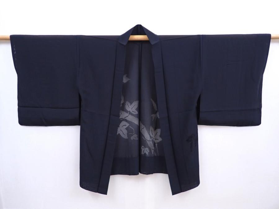 5910T01z300 Vintage Japanese Kimono Silk See through HAORI Bamboo Black