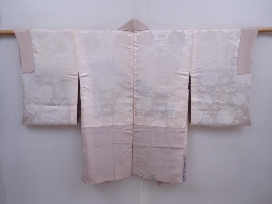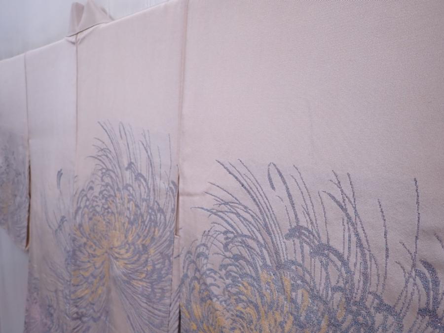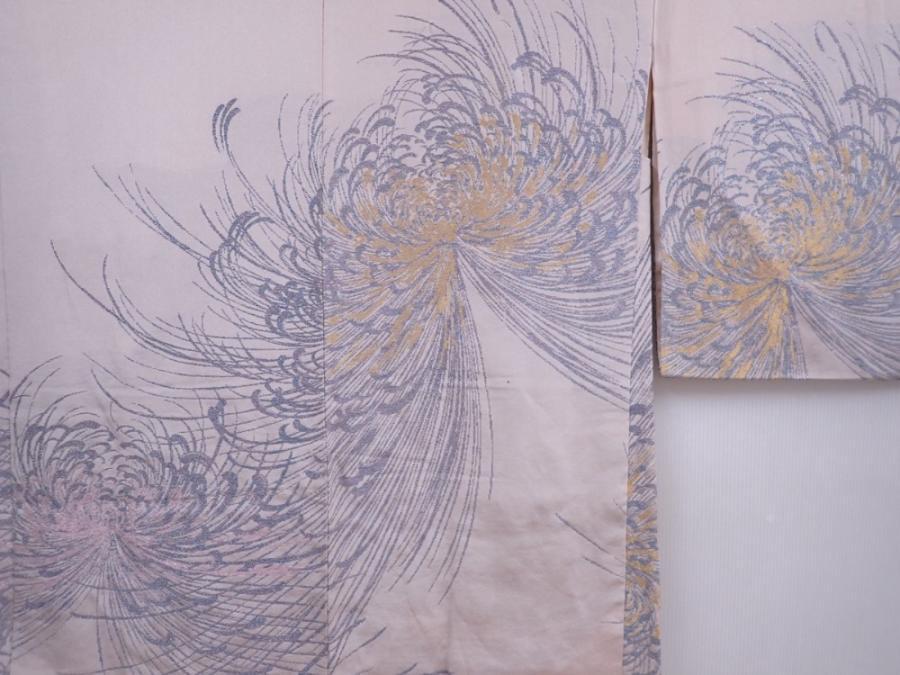 5910T02z550 Vintage Japanese Kimono Silk HAORI Chrysanthemum Ash pink