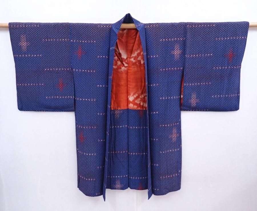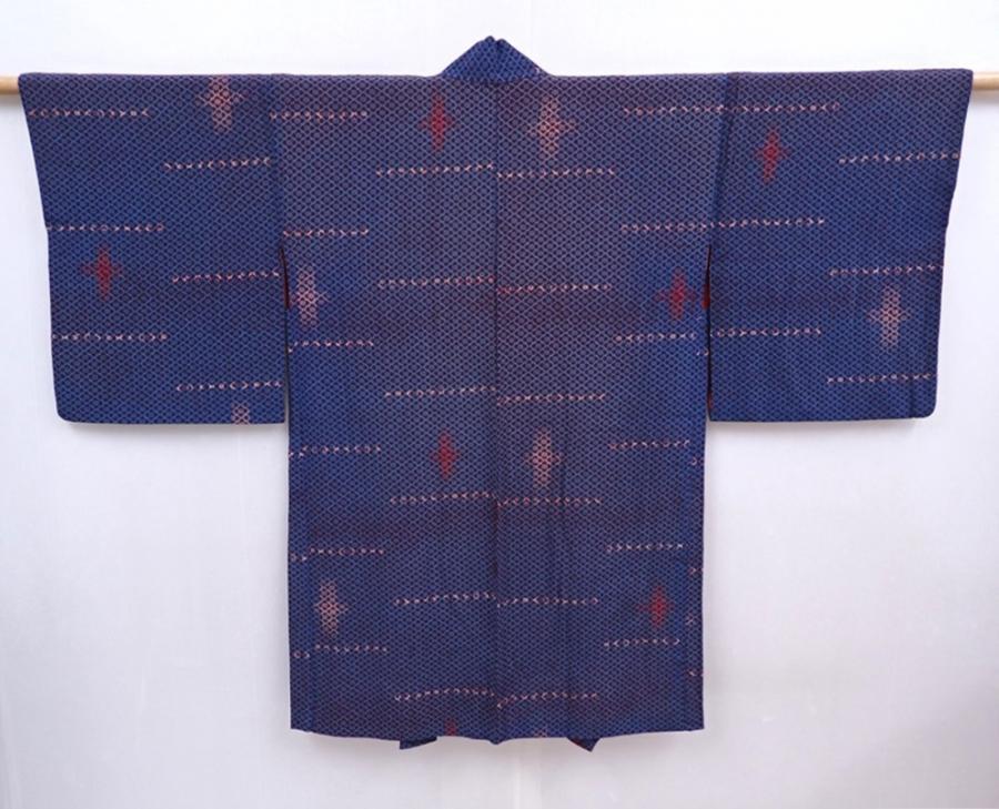 5910T04z610 Antique Japanese Kimono Silk HAORI Dark blue