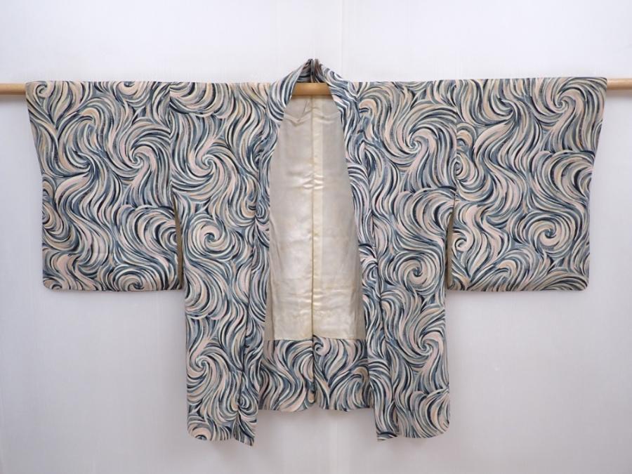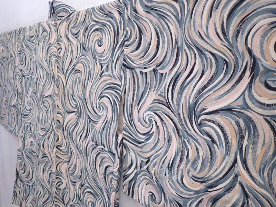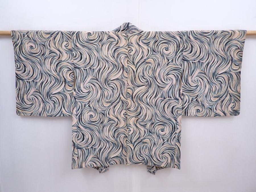 5910T09z520 Vintage Japanese Kimono Silk HAORI Blue-Gray