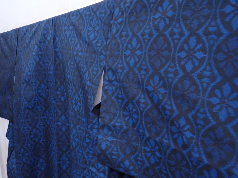 5910T12z610 Vintage Japanese Kimono Silk TSUMUGI Flower Dark blue
