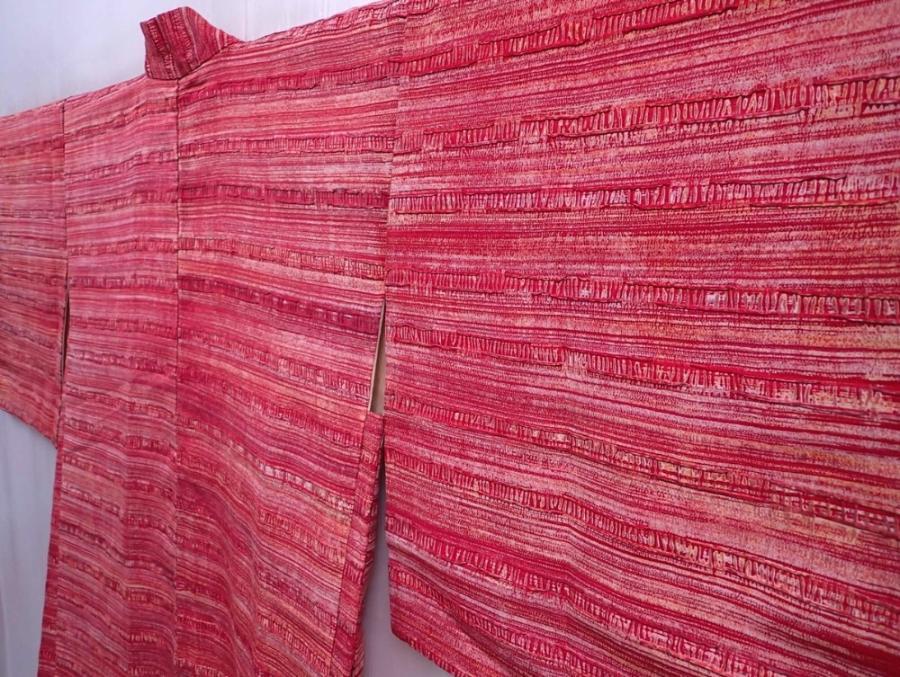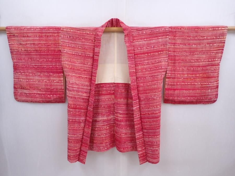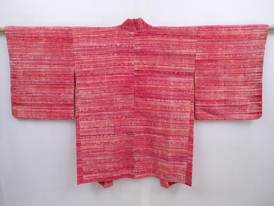 5911T04z590 Vintage Japanese Kimono Silk HAORI Dark red