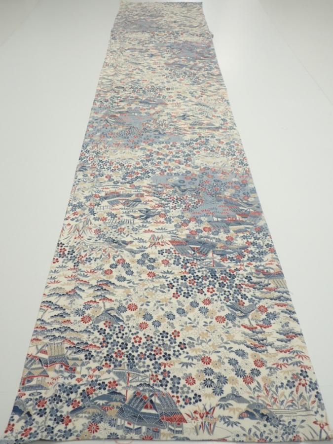 2U03z100 Japanese Kimono Crepe Silk FABRIC Old house Off-white 65.4x14.2