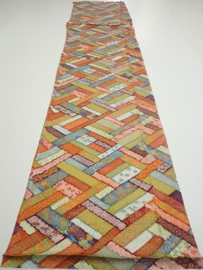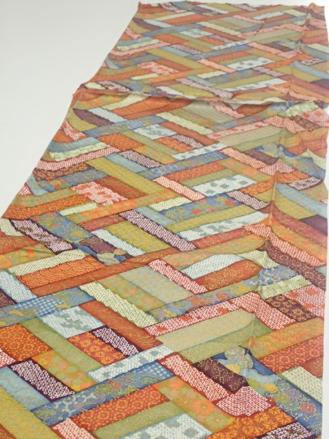 2U06z80 Japanese Kimono Silk FABRIC Red-Brown, Navy 61.4x14.4