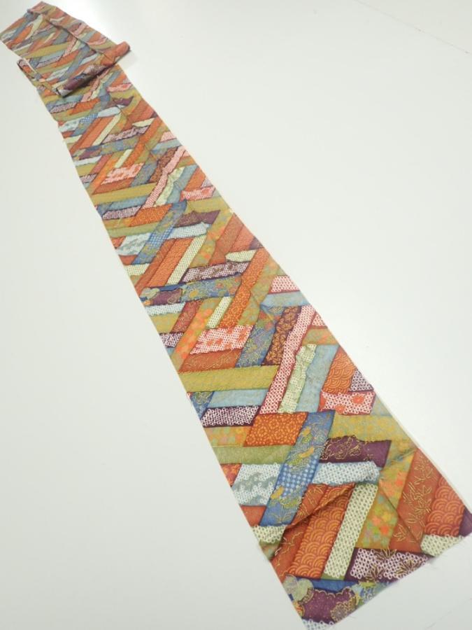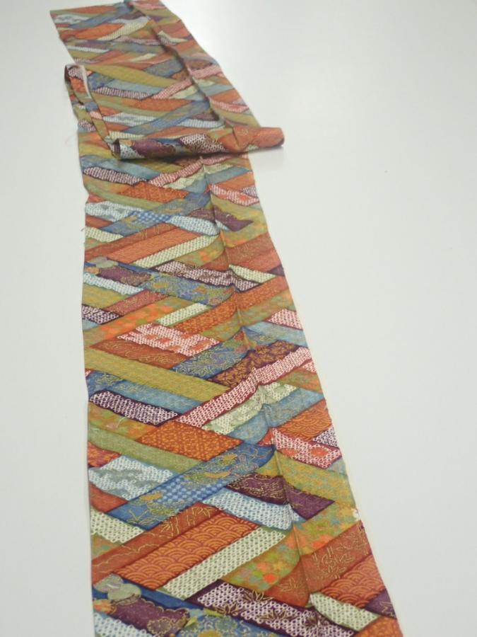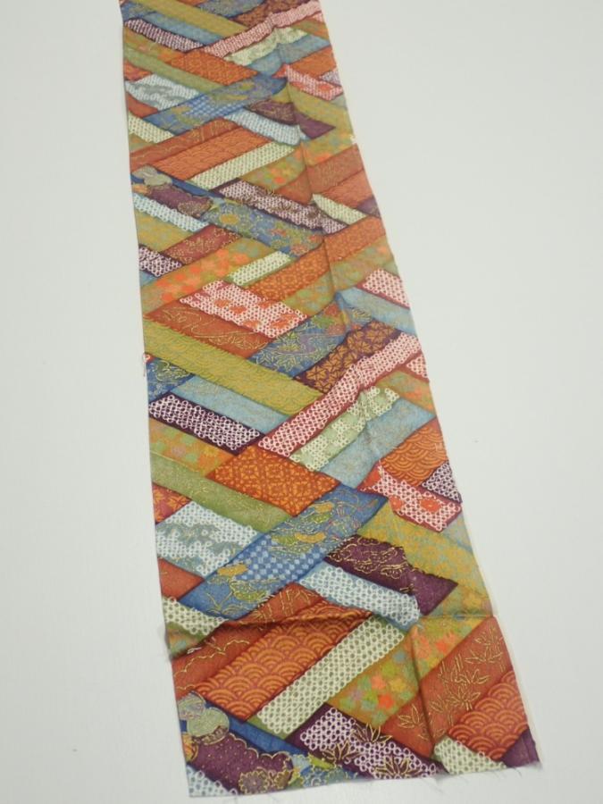 2U09z50 Japanese Kimono Silk FABRIC Red-Brown, Navy 78.7x6.7
