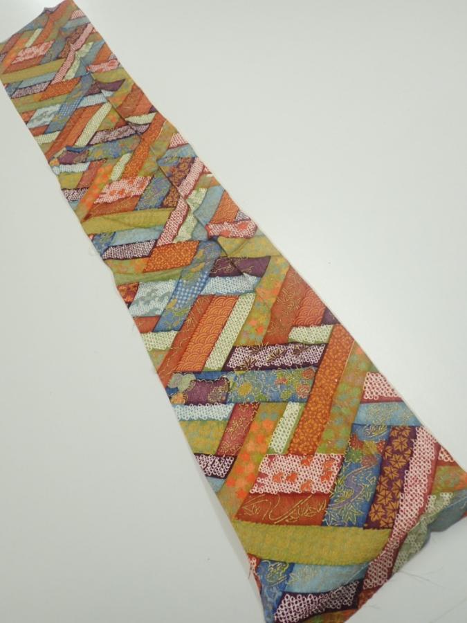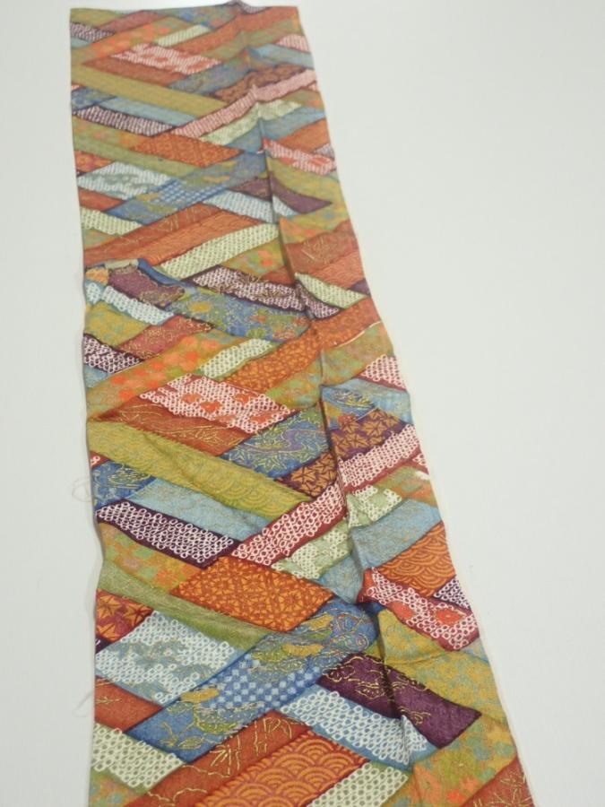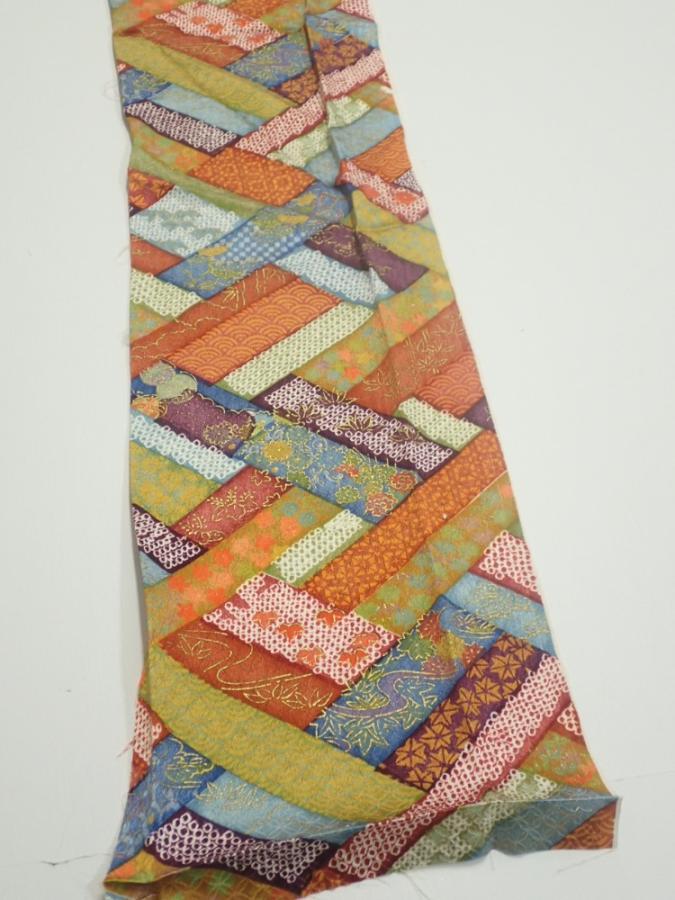 2U10z30 Japanese Kimono Silk FABRIC Red-Brown, Navy 36.2x6.7
