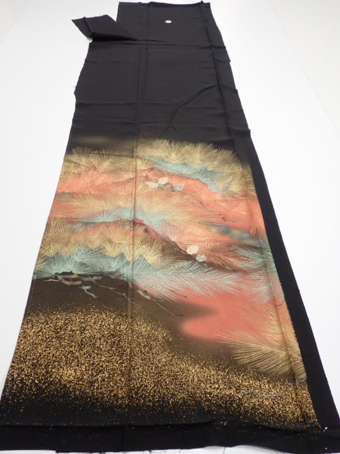 1J03z150 Japanese Kimono Silk FABRIC Pine Black 56.7x18.1