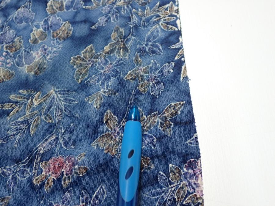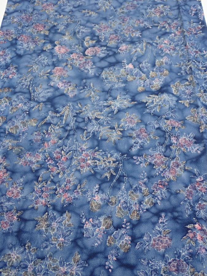 1J03z100 Japanese Kimono Crepe Silk FABRIC Flowers Dull blue 66.1x14.2