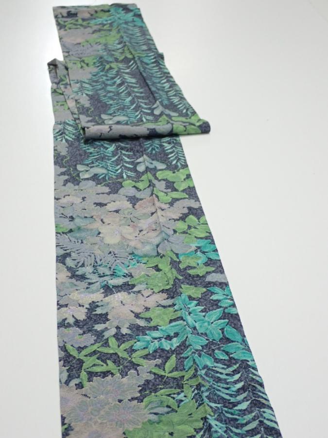 1J09z60 Japanese Kimono Silk FABRIC Plants Navy-Gray 81.1x7.1