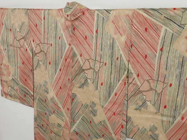 ?1019i02z870 Vintage Japanese Kimono Silk HAORI Ecru beige??