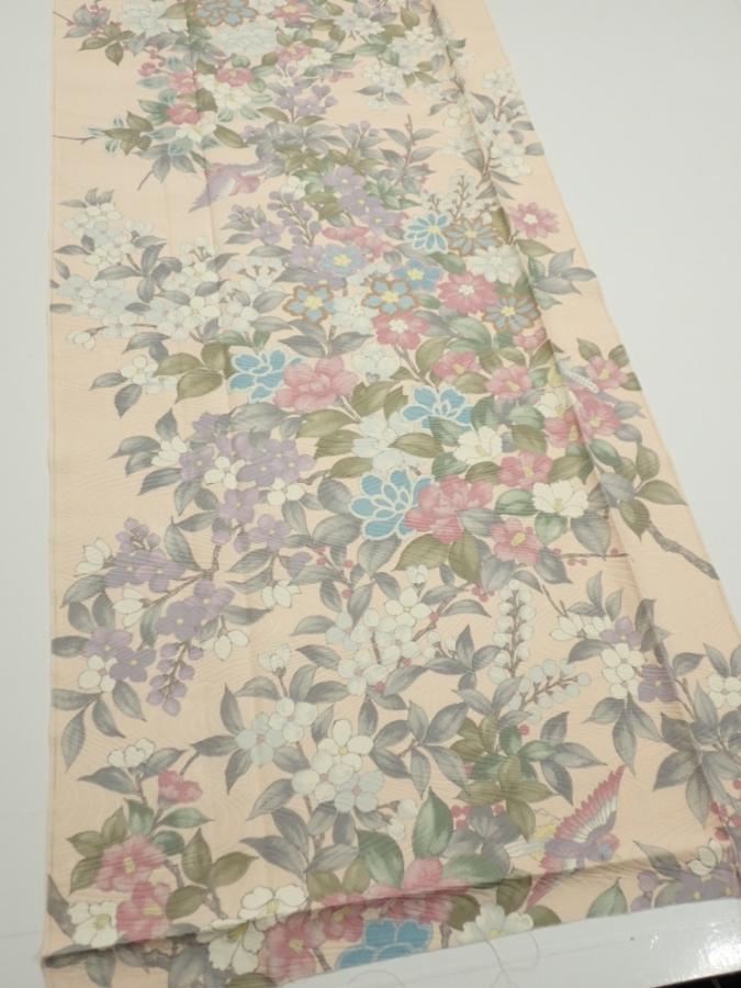 1J05z90 Japanese Kimono Silk FABRIC Bird Flower Light peach 68.5x14.4