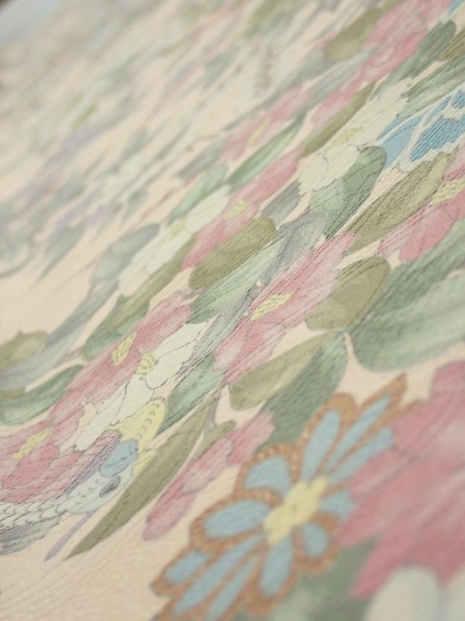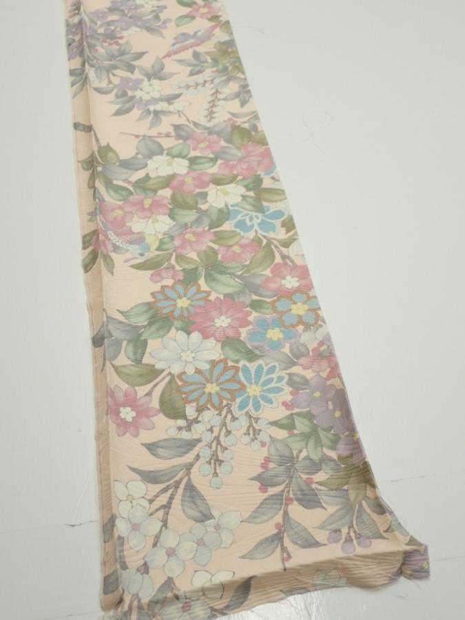 1J07z40 Japanese Kimono Silk FABRIC Bird Flower Light peach 60.6x7.1