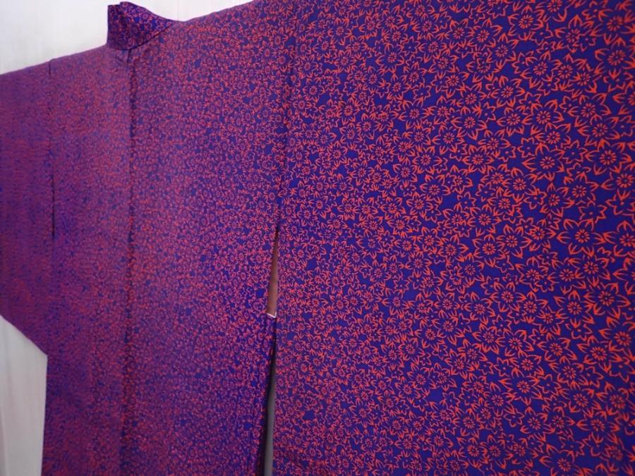 5912T02z620 Vintage Japanese Kimono Silk HAORI Flower Dark lavender blue
