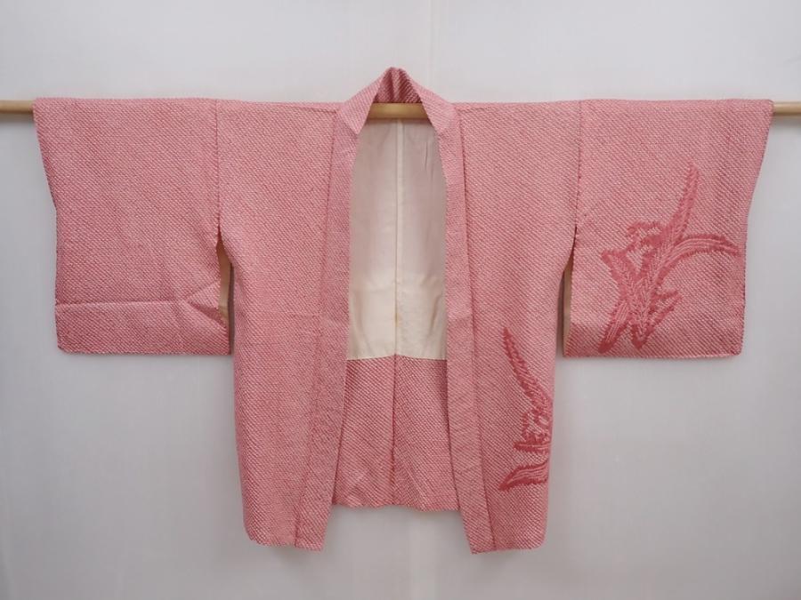 5912T08z440 Vintage Japanese Kimono Silk SHIBORI HAORI Flower Pink