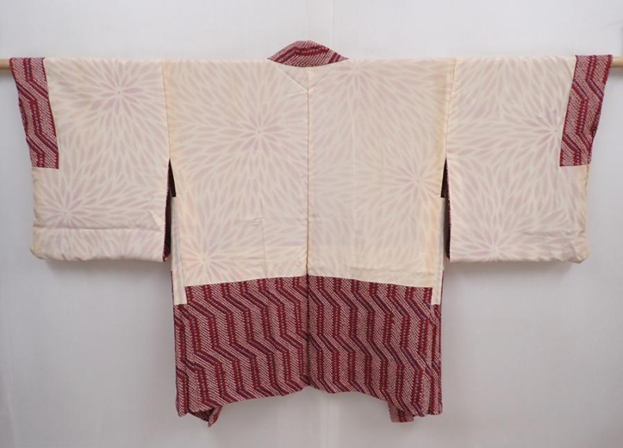 5912T10z520 Vintage Japanese Kimono Silk SHIBORI HAORI Red-Brown
