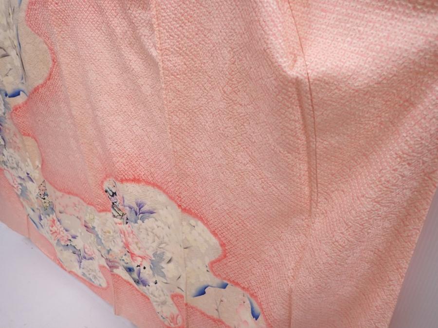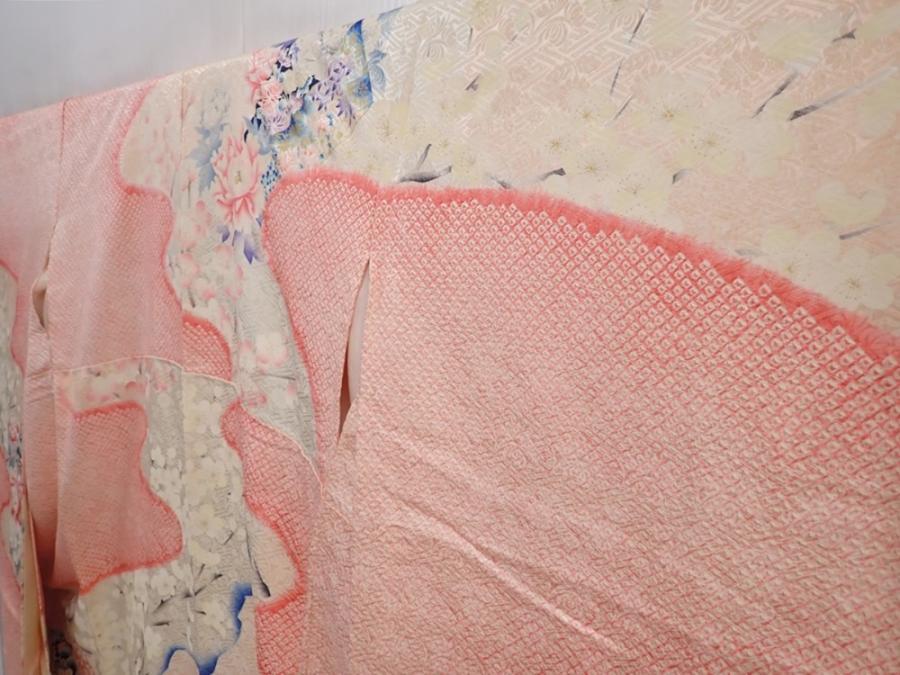 5912T12z1240 Vintage Japanese Kimono Silk FURISODE Flowers Pink