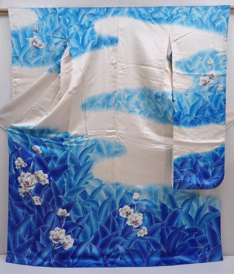 5912T13z1080 Japanese Kimono Silk FURISODE Flower Oriental blue
