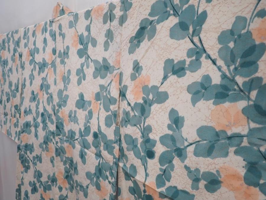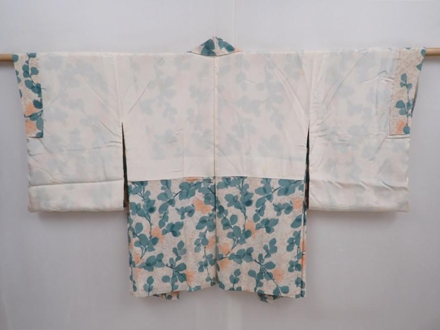 5913T02z510 Vintage Japanese Kimono Silk HAORI Flower Off-white