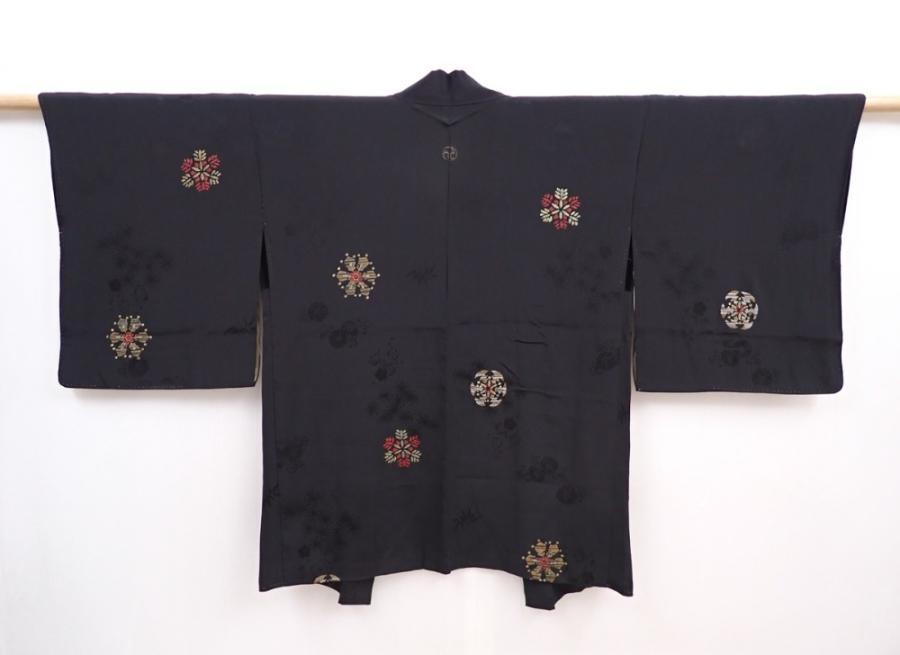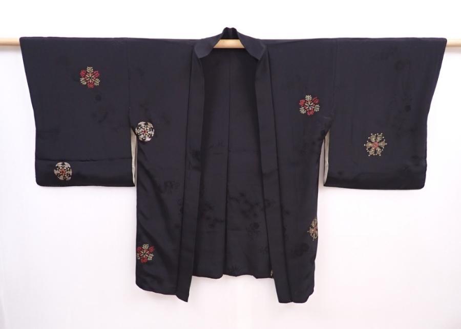 5913T05z430 Vintage Japanese Kimono Silk HAORI Snow crystal Black