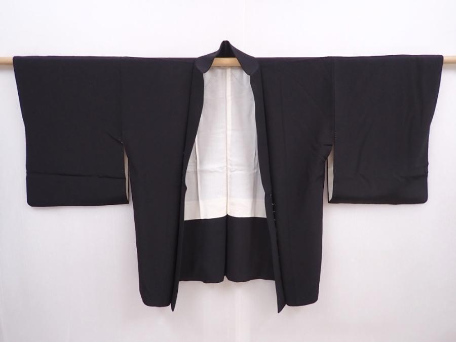 5913T07z630 Vintage Japanese Kimono Silk HAORI Plain Black