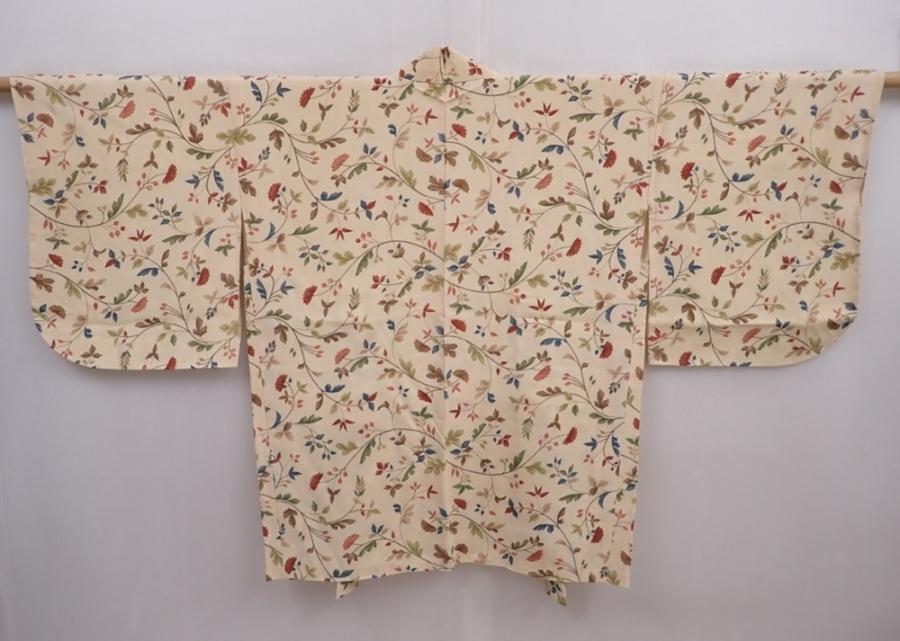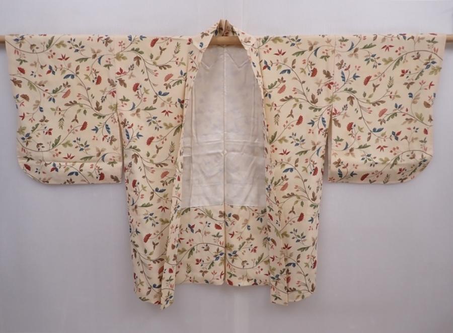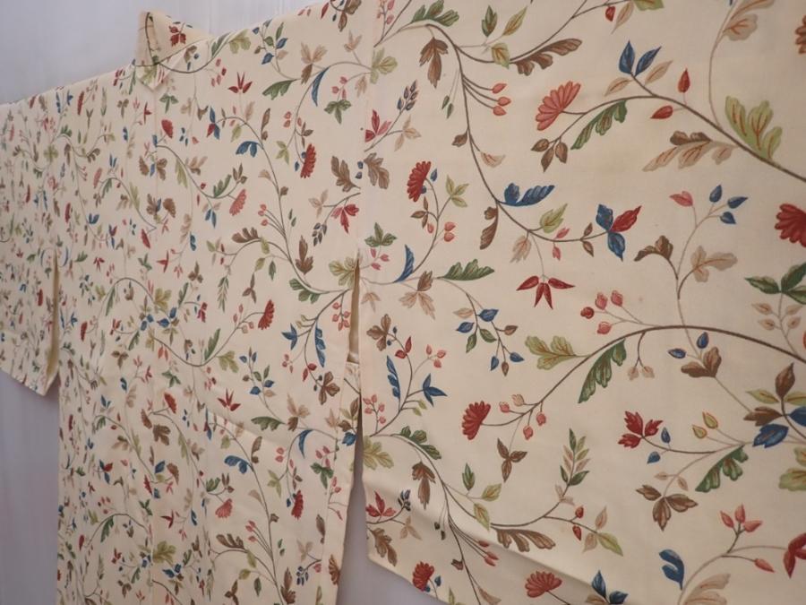 5913T08z490 Vintage Japanese Kimono Silk HAORI Flower Light cream