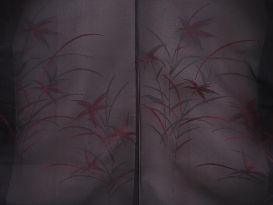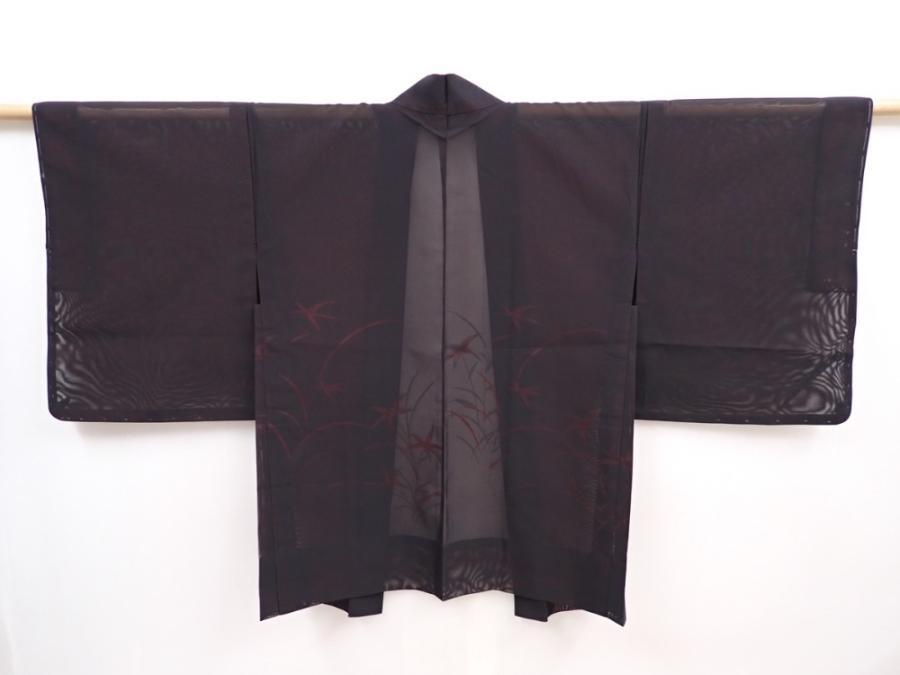 5914T05z260 Vintage Japanese Kimono Silk See through HAORI Plants Black