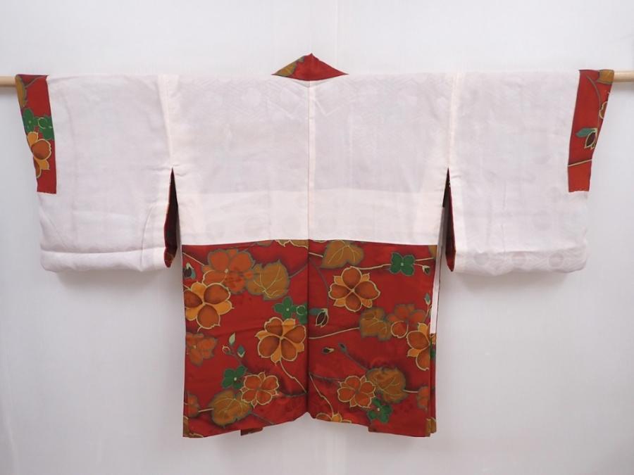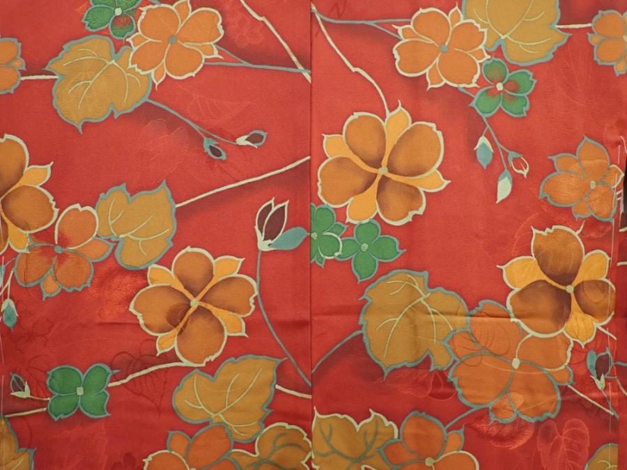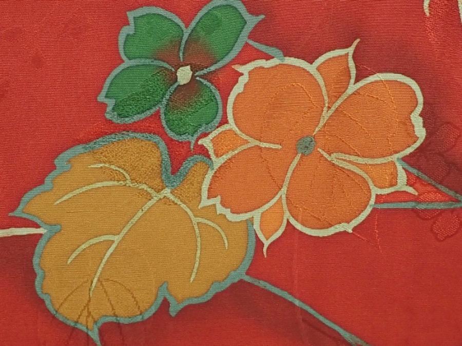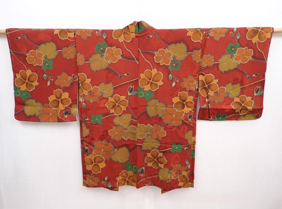 5914T06z590 Vintage Japanese Kimono Silk HAORI Flower Red-Brown