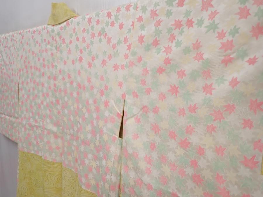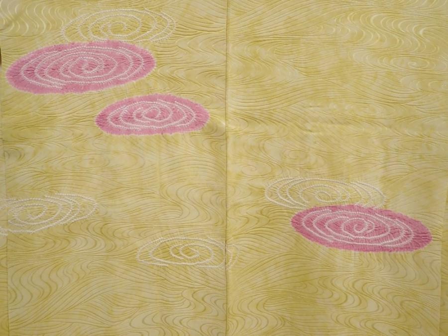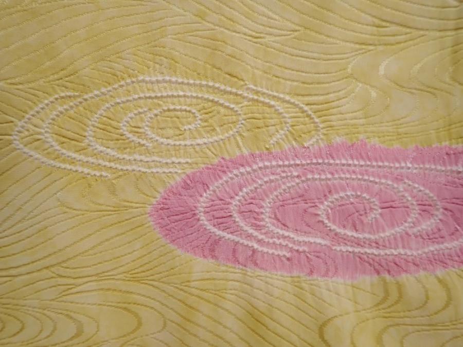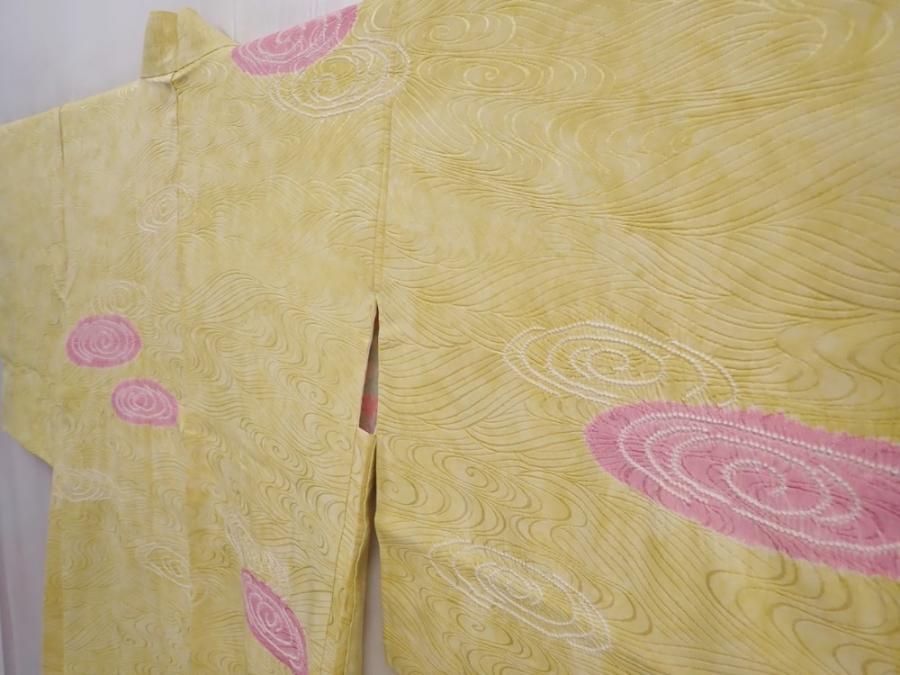 5914T08z560 Vintage Japanese Kimono Silk HAORI Ripple Straw yellow