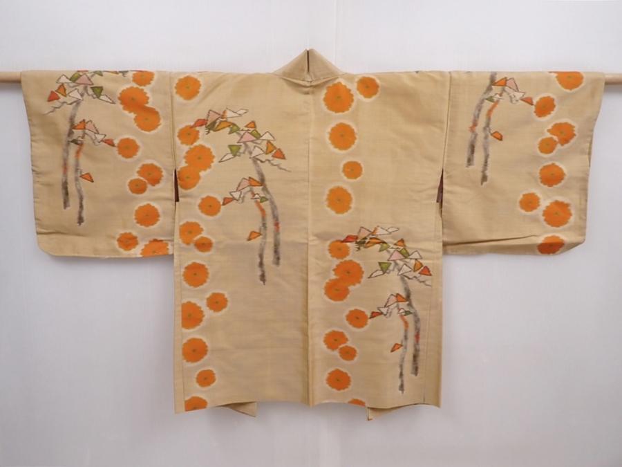 5914T11z320 Vintage Japanese Kimono Silk MEISEN HAORI Dark champagne