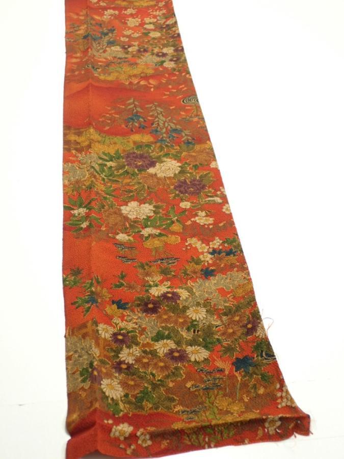2E08z50 Japanese Kimono Crepe Silk FABRIC Flowers Dark orange 61.4x7.5