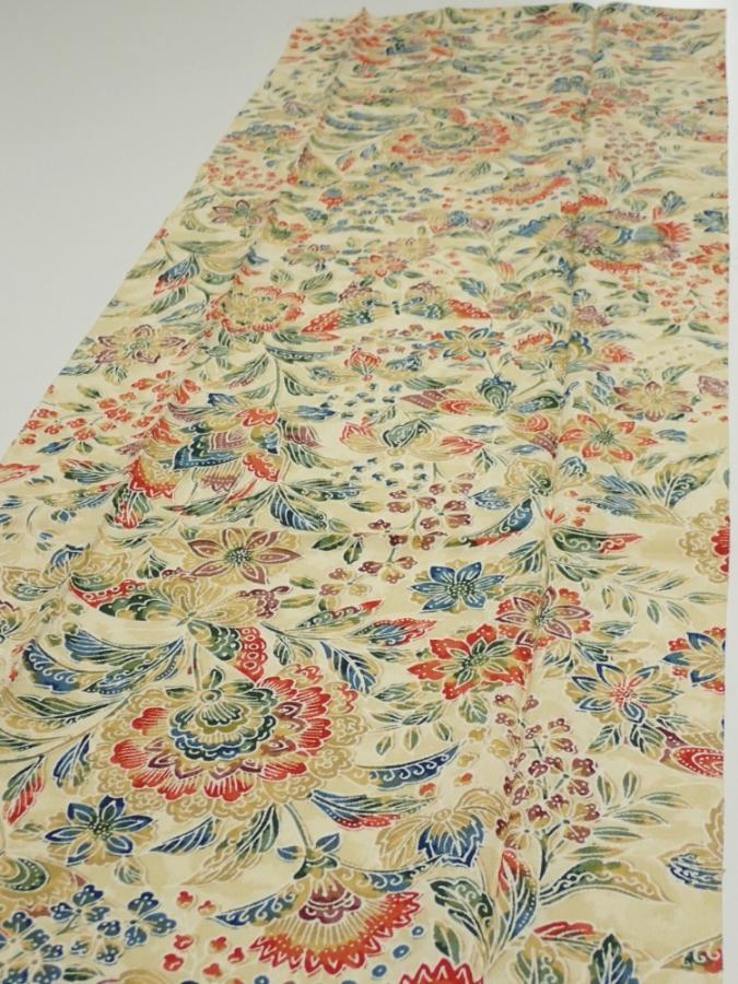 2E04z90 Japanese Kimono Silk FABRIC Flowers Sand beige 59.8x14.6