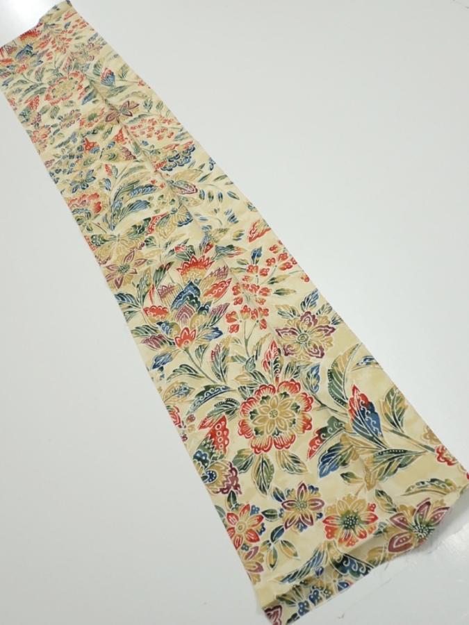 2E10z30 Japanese Kimono Silk FABRIC Flowers Sand beige 38.6x7.3