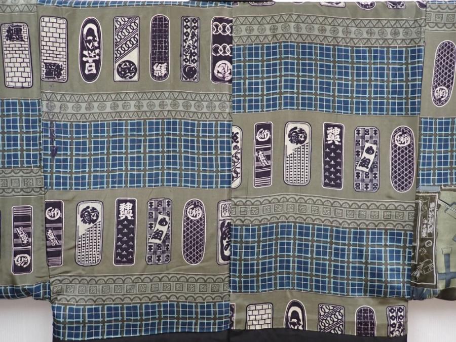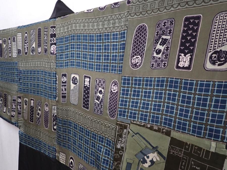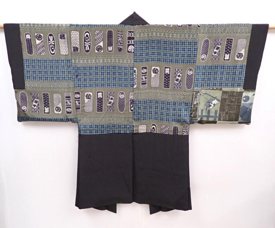 5920T05z550 Vintage Japanese Kimono Silk Men's HAORI 千社札 Black