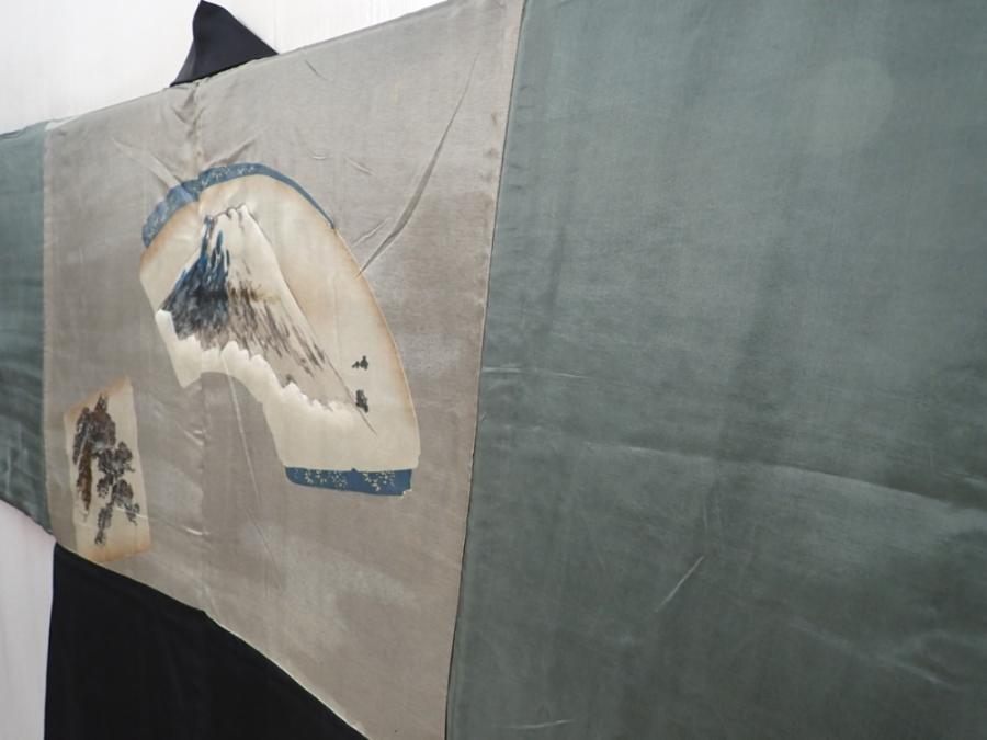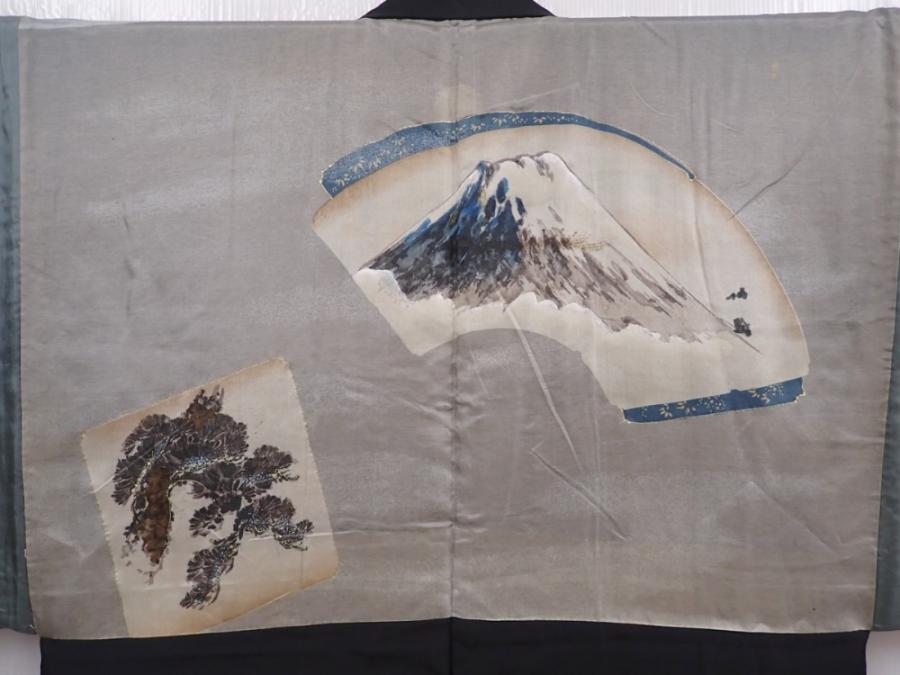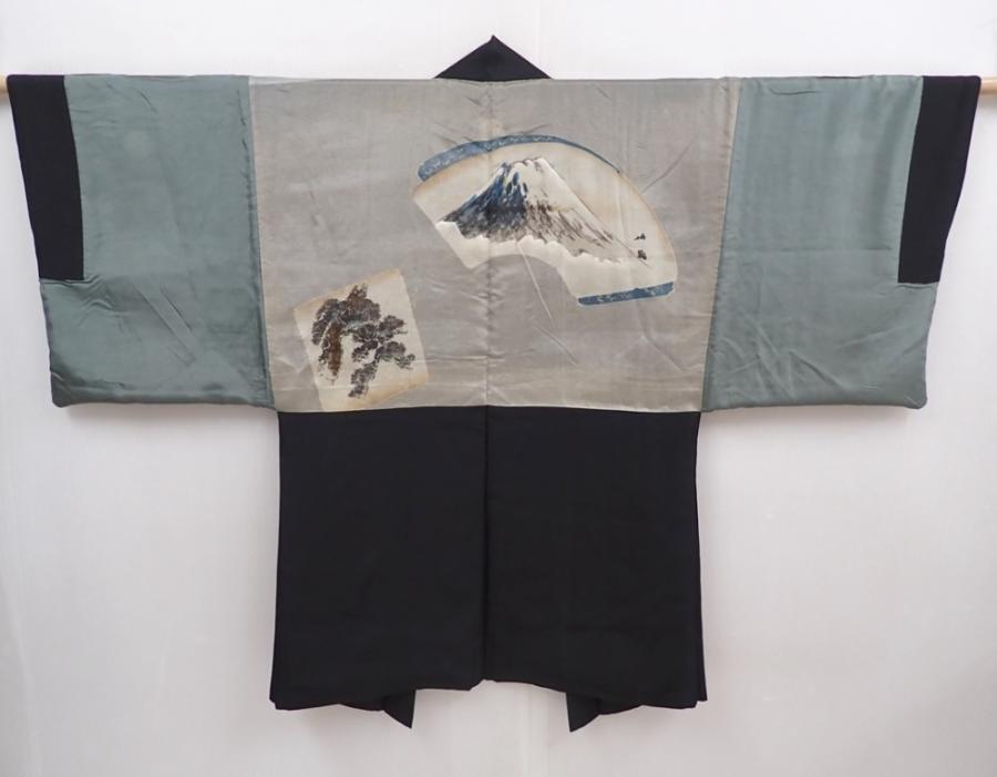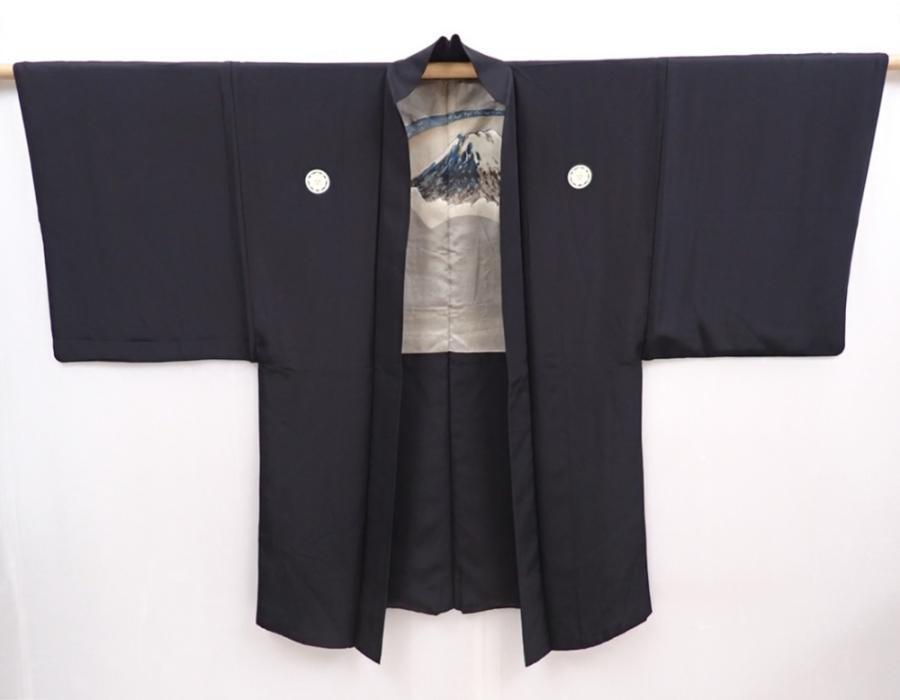5920T09z510 Vintage Japanese Kimono Silk Men's HAORI Mt.Fuji Black