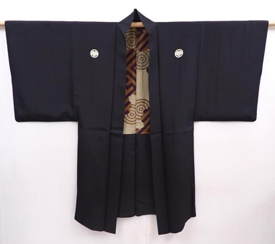 5920T11z680 Vintage Japanese Kimono Silk Men's HAORI Black