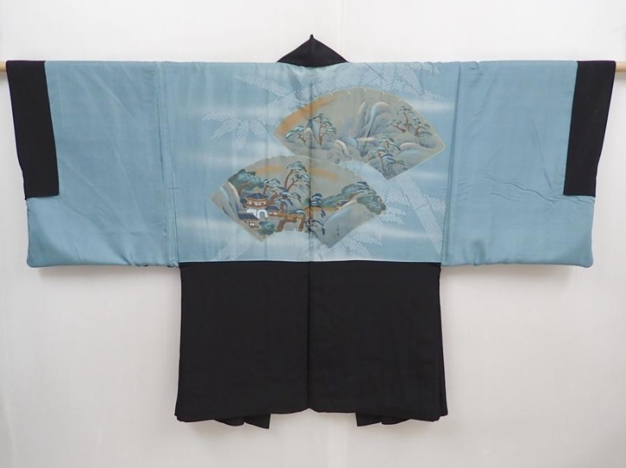 5920T12z560 Vintage Japanese Kimono Silk Men's HAORI Scenery Black
