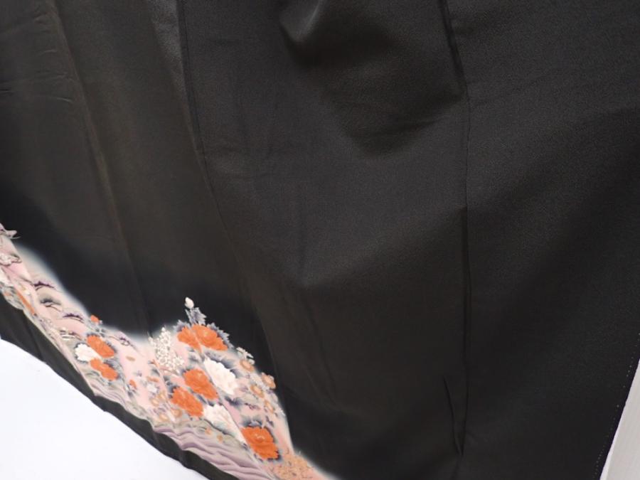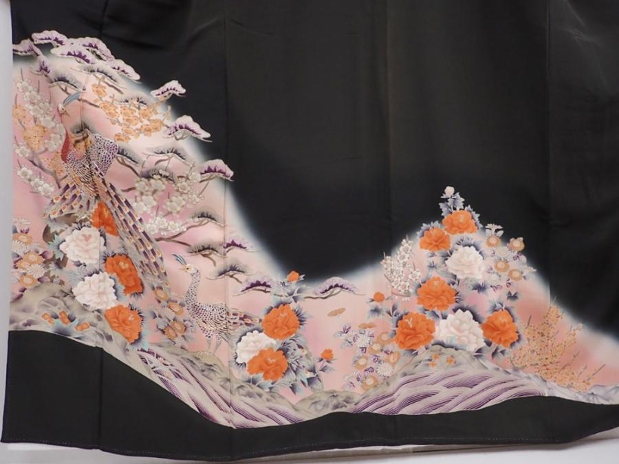 5926T01z1140 Japanese Kimono Silk TOMESODE Peacock Black